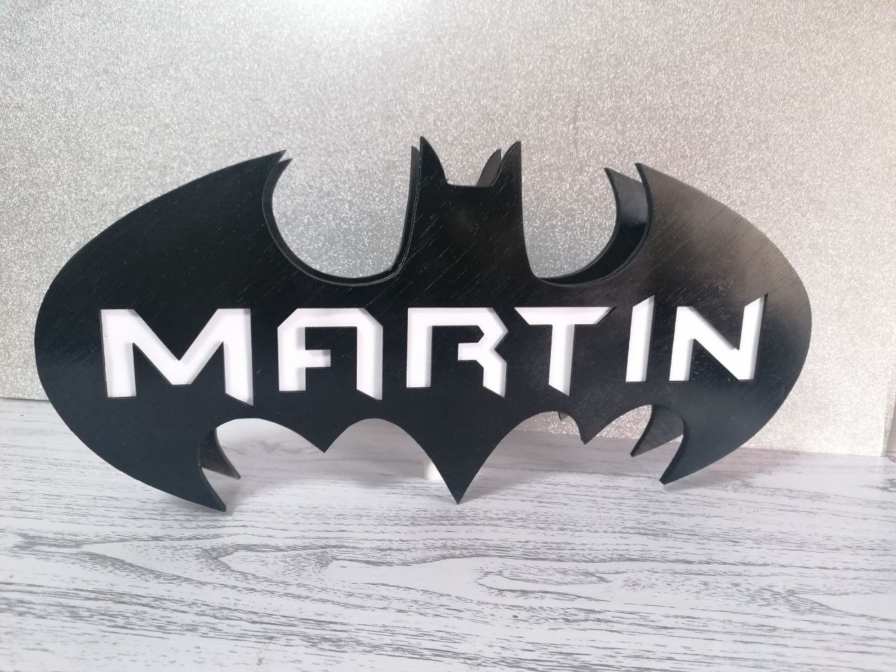 El motivo principal es Murciélago de Batman y puedes personalizar el nombre.